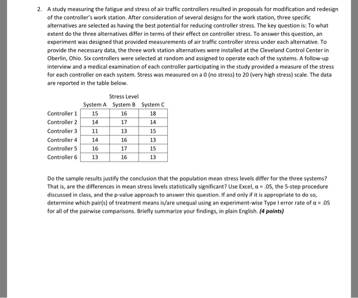 Solved 2 A Study Measuring The Fatigue And Stress Of Air Chegg Com